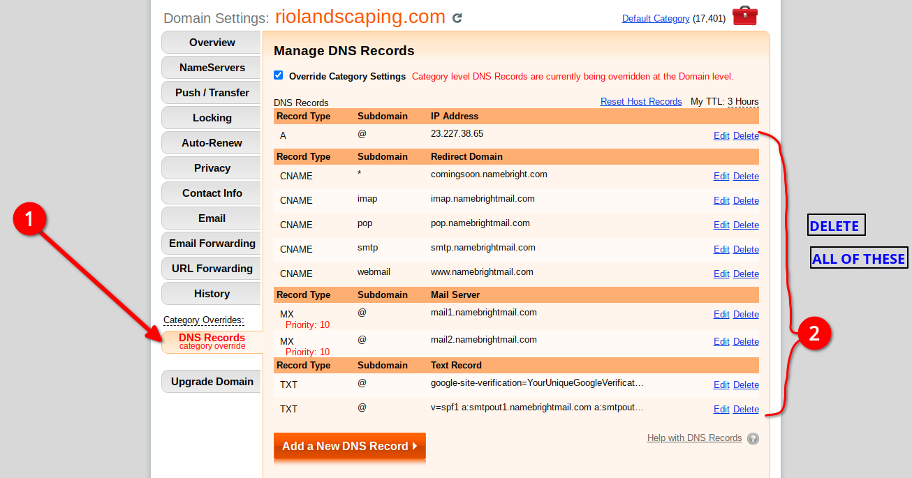 Then enter NameBright's nameservers